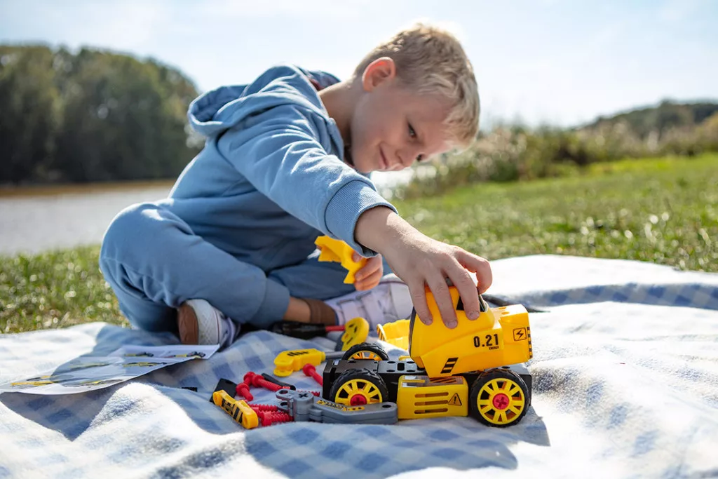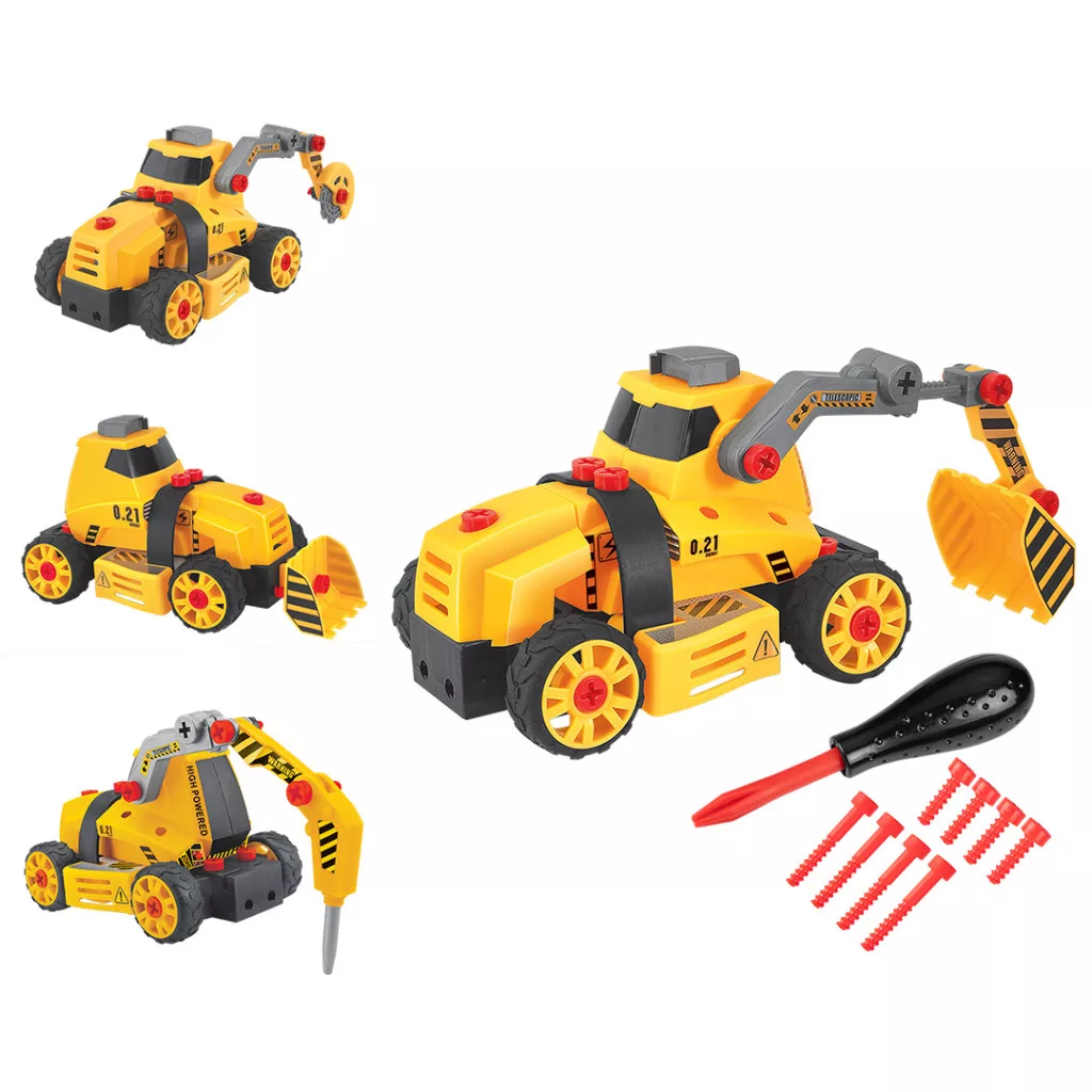 NEO GD041 Játék munkagép, 4az1ben, szerelőkészlettel. Egy modern játék, amely 28 darabból áll, és úgy tervezték, hogy egy műanyag csavarhúzóval össze lehessen rakni. A strapabíró PP anyagból készült, 3 évesnél idősebb gyermekek számára ajánlott játék sikeres ajándék lesz az építőipari járművek rajongóinak. A NEO TOOLS márkájú játék 4 változatban kínál konfigurálási lehetőséget: buldózerként, ütvecsapó kalapács a gémre, kotrógép a gémre, körfűrész a gémre. CE tanúsítvánnyal rendelkezik.