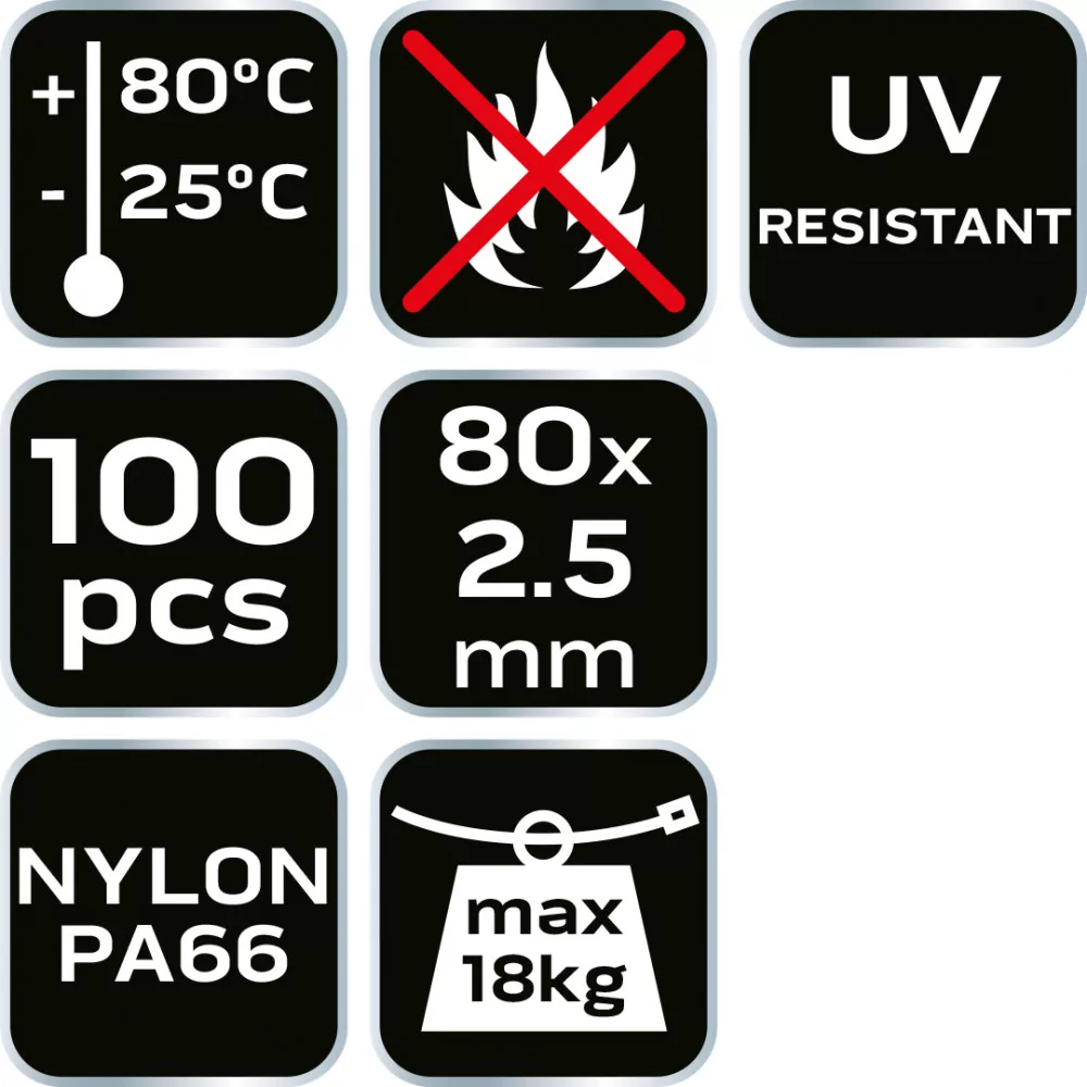 NEO Kábelkötegelő, gyorskötöző, EXTREME, UV álló, fehér, 2,5x80mm, 100db/cs (01-646)