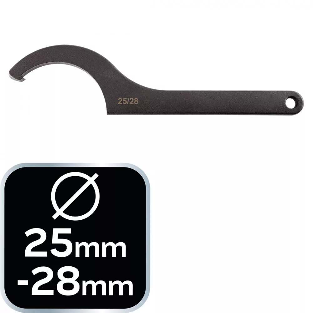 NEO kampóskulcs. Szerszám a vázfejcsapágy anyák beállításához, hátsó felfüggesztés beállításához, lánc beállításához egyoldali lengőkarral felszerelt motorkerékpároknál. Professzionális és barkács felhasználásra egyaránt ajánljuk.