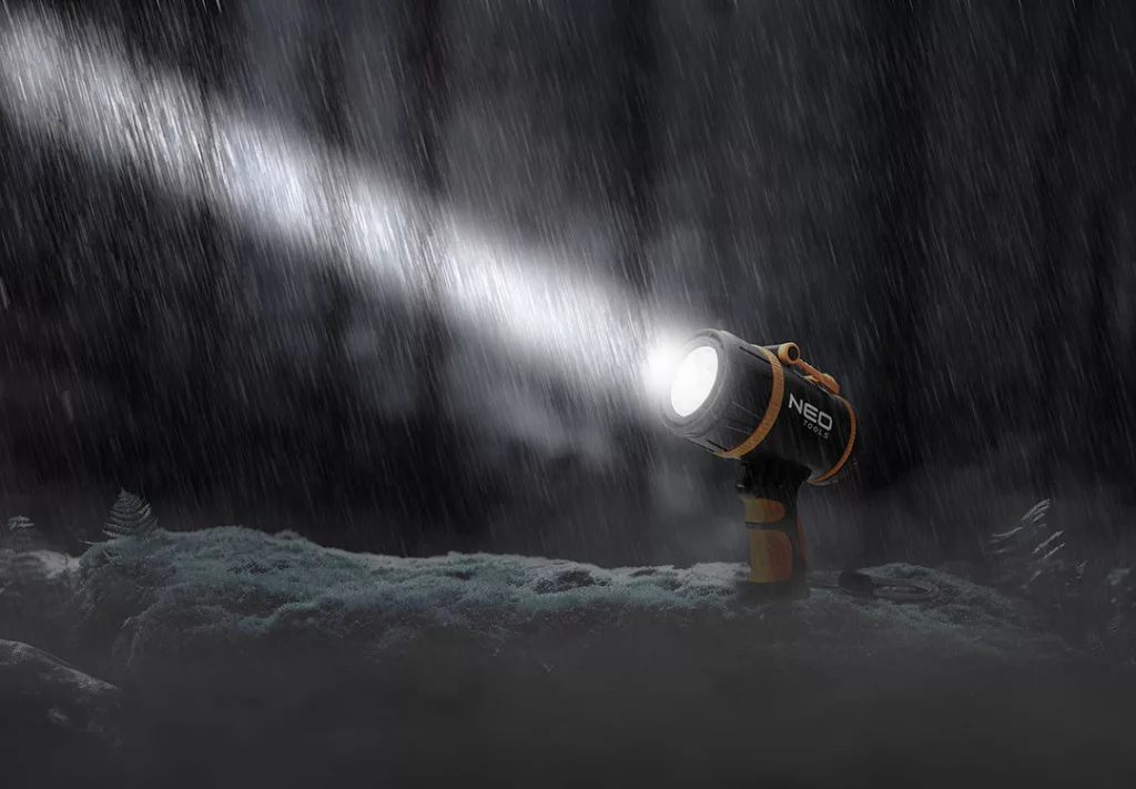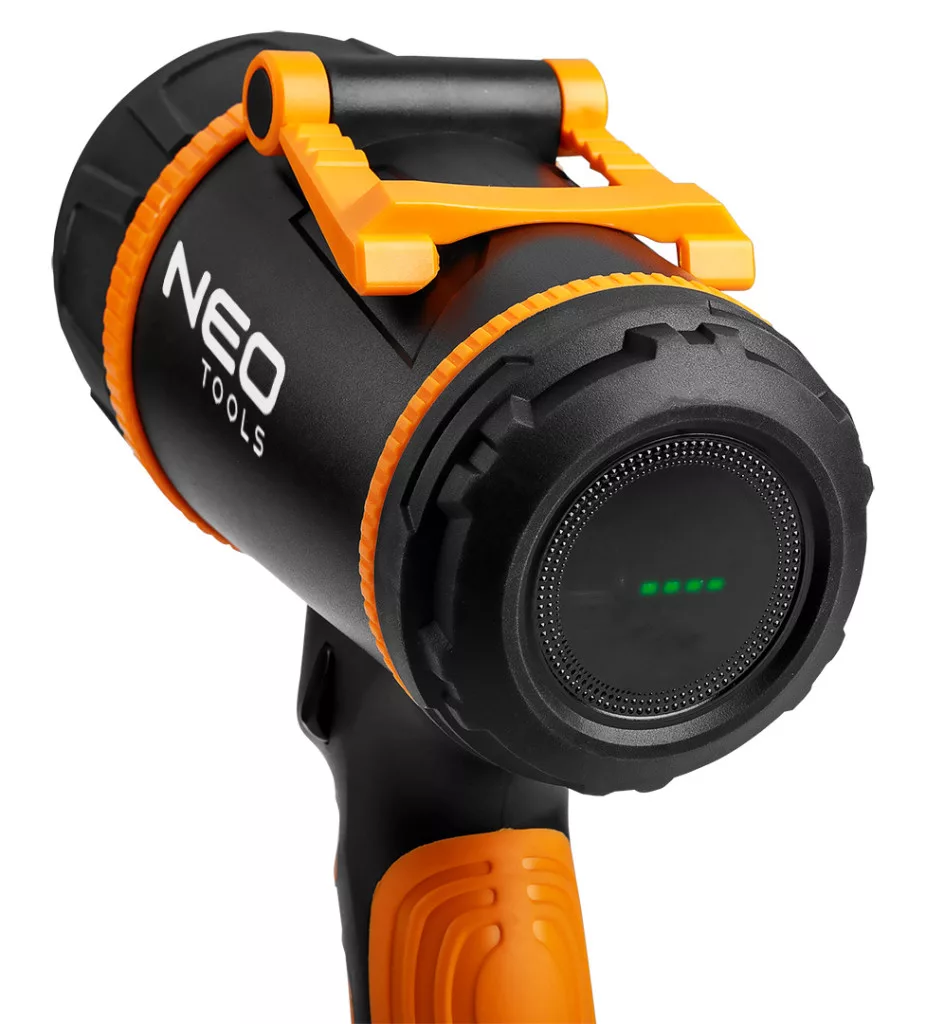 NEO 99-114 Keresőlámpa, 1000lm fényerő, 3,7V/2200mAh akku, vízálló, powerbank funkció, töltéskijelző, 350m hatótávolság. Beépített SST40 LED-del rendelkezik. Teste ABS és TPR műanyagok tartós kombinációjából készült. IP44-es víz- és porállósági besorolással rendelkezik, így ellenáll a különböző időjárási körülményeknek. A beépített 18650 lítium 3,7 V-os lítium akkumulátor 4400 mAH kapacitással 4-8 órás üzemidőt biztosít, a töltési idő 6-7 óra. A NEO TOOLS keresőlámpa rendelkezik POWER BANK funkcióval, 100%-50% funkciókkal, hosszú SOS gombbal és akkumulátor töltöttségjelzővel. USB C kábellel, praktikus csuklózsinórral és kiegészítő hordozófogantyúval kínáljuk. Az ON/OFF biztonsági gomb növeli a készülék használatának kényelmét. A NEO TOOLS lámpát kis mérete (154 x 173 mm) és alacsony, 490 g-os súlya különbözteti meg. Sokféle körülmények között - mindennapi használat során és extrém helyzetekben egyaránt - bizonyítani fog.
