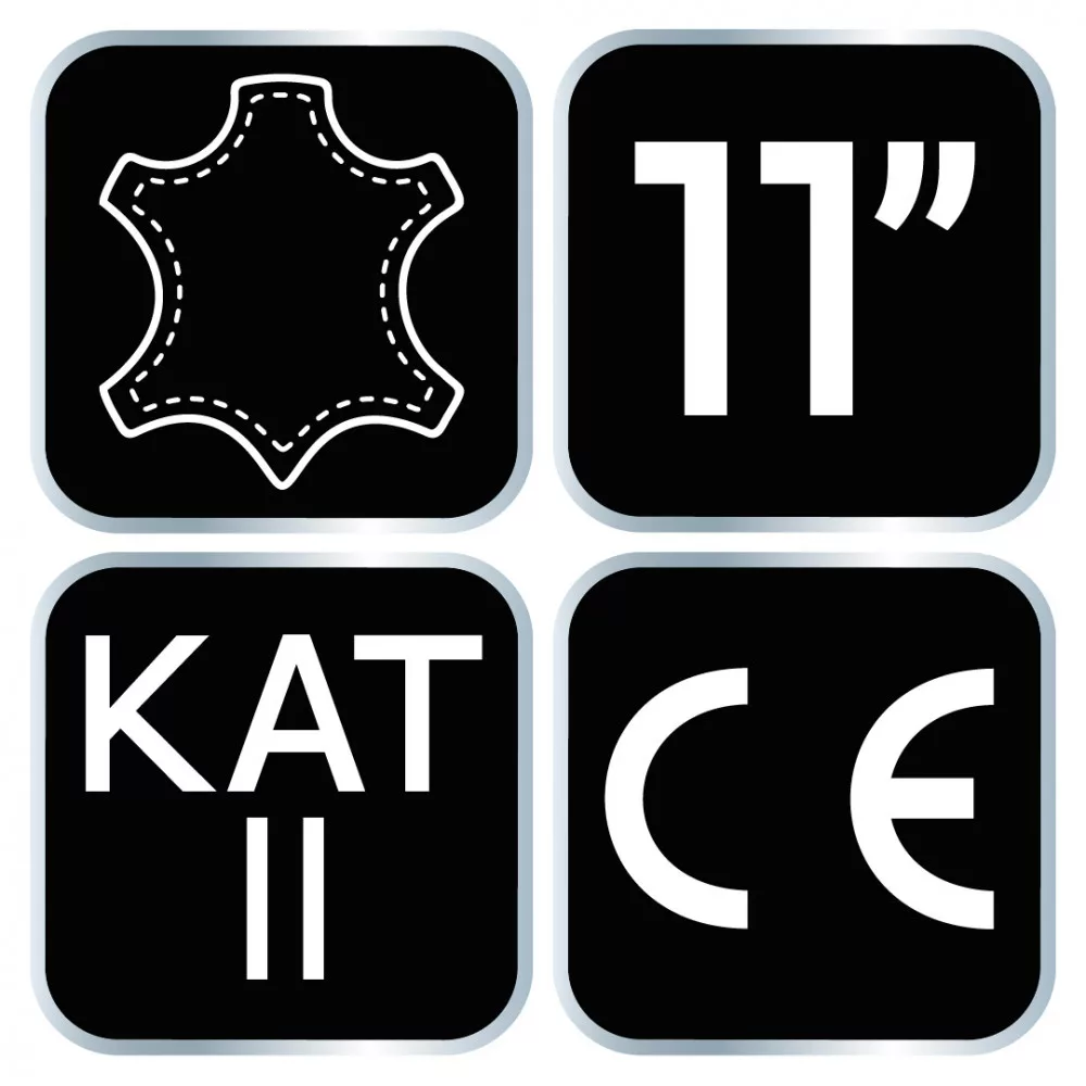 A NEO munkakesztyű védi a kezet a szennyeződések, karcolások és káros körülmények ellen. A kesztyű markolat része kecskebőrből készült, a mandzsetta rugalmas, és ezen felül tépőzárral van ellátva. A CE-jelölés biztonsági garancia arra, hogy a termék megfelel az összes uniós követelménynek. A következő méretekben kapható: 8", 9", 10",11"