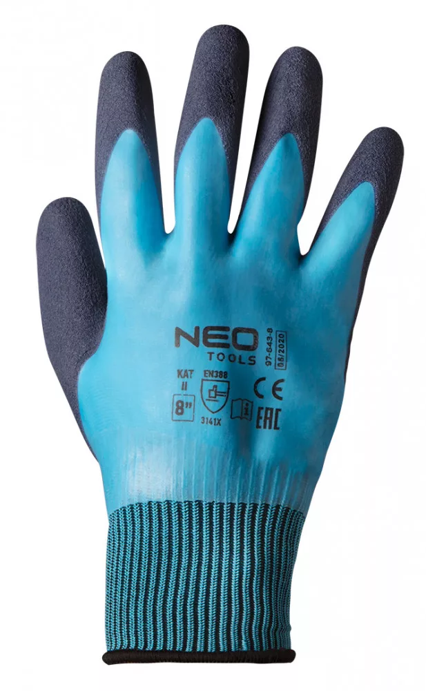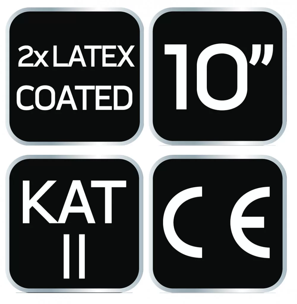 Munkakesztyű, latex bevonatú poliészter (2 réteg), 3141X, méret 10, fő anyaga: poliészter, fedele: 1. réteg latex, 2. réteg a tenyér oldalán, hab latex, kopásállóság (0–4) 3, éles tárgyvágás (0–5) 1, szakadásállóság (0–4) 4, szúrási ellenállás (0-tól 4-ig) 1, vágási ellenállás az EN ISO 13997 X szerint, jól illeszkedik a kézhez, alkalmazás: bármilyen szállítási, kezelési, raktározási, tárolási, összeszerelési munkálat, apró elemek gyártása, barkács, autó , kertészkedés, CE