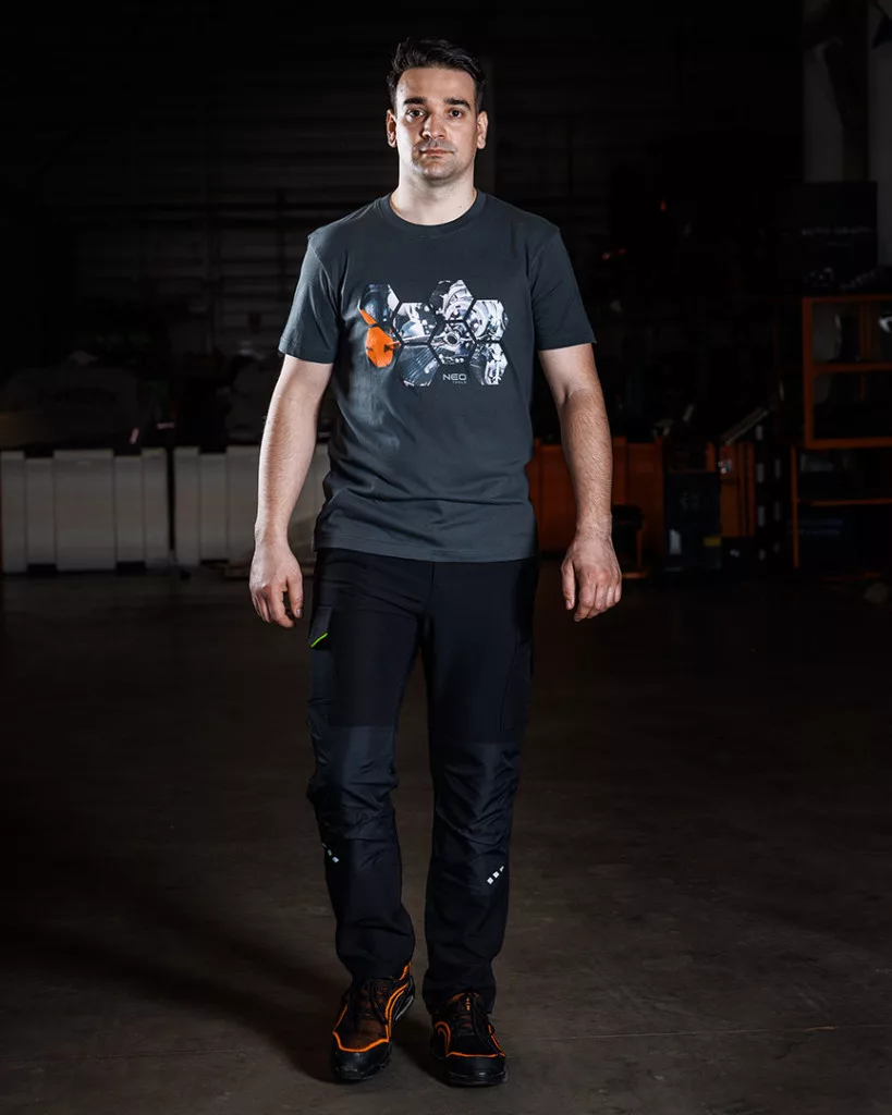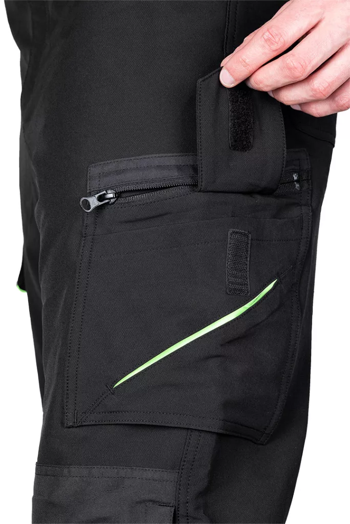 NEO 81-295-1 MUNKÁSNADRÁG, MIX&MATCH, 4 IRÁNYÚ SZTRECCS, 230G/M2, FEKETE-ZÖLD. Egy nadrág a Mix&Match vonalból, amely arra ösztönzi, hogy a kiválasztott munkaruházat elemeit a saját ízlése szerint állítsa össze. A nadrág tartós 4 irányú sztreccs anyagból készült, amely 92% poliészterből és 8% spandexből áll, súlya 230 g/m2. Fekete, praktikus színű, energikus zöld elemekkel. A dupla varrás, a térdvédőknek helyet adó térdmegerősítések, a lábszár alsó részén található megerősítések és a profilozott térdek hozzájárulnak e modell kivételes tartósságához és robusztusságához. A fényvisszaverő nyomtatásnak köszönhetően ideális a sötétedés utáni munkavégzéshez. A szerszámcsipesz és a névtábla viszont növeli a komfortot, és megkönnyíti a ruházat azonosítását a professzionális környezetben. A NEO TOOLS munkanadrág megfelel a CE EN ISO 13688:2013 szabványnak.