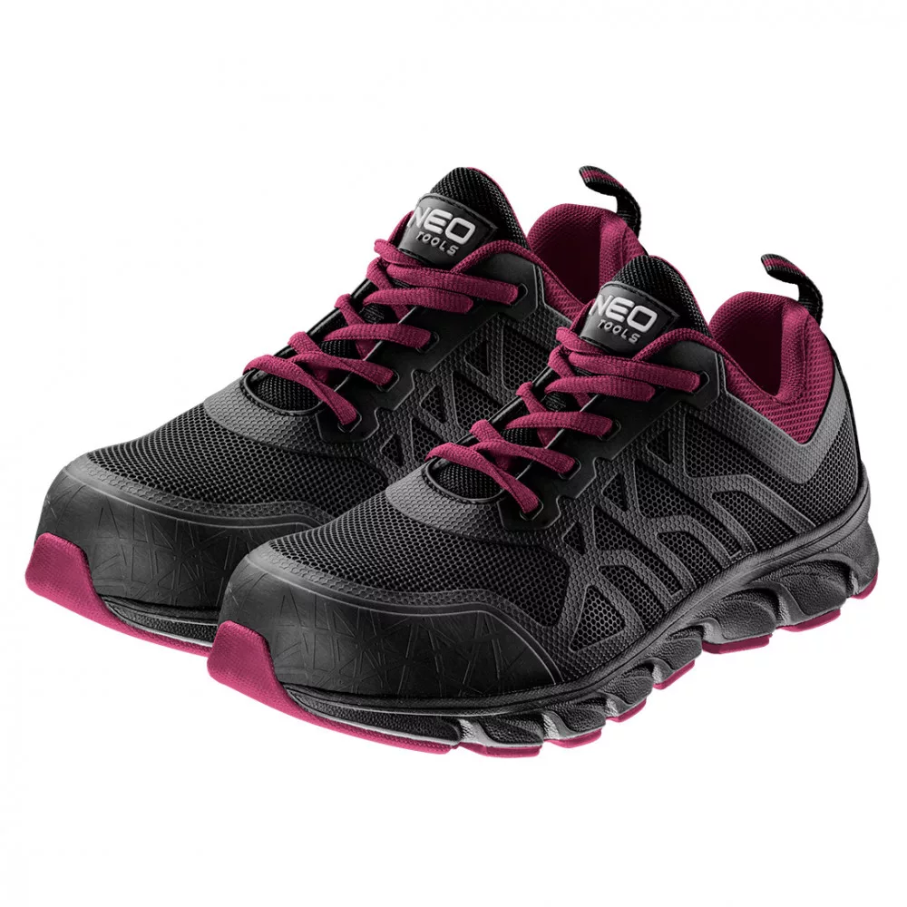 S1P SRC munkavédelmi cipő, fém részektől mentes, rázkódást elnyelő csúszásgátló talp, kopásnak, olajnak, benzinnek és egyéb organikus hígítónak ellenálló két sűrűségű PU talp, 200J ütésnek ellenálló, üvegszál orr, átszúrásnak ellenálló kevlár betét, antielektrosztatikus betét, gumitalp, légáteresztő, könnyű, divatos kinézet, S1P SRC kategóriájú cipő (SRC- lauril-nátrium-szulfát (SLS) eleggyel bevont kerámiás talajon és glicerollal bevont acél talajon csúszásmentes), CE tanúsítvány, mérete 37.