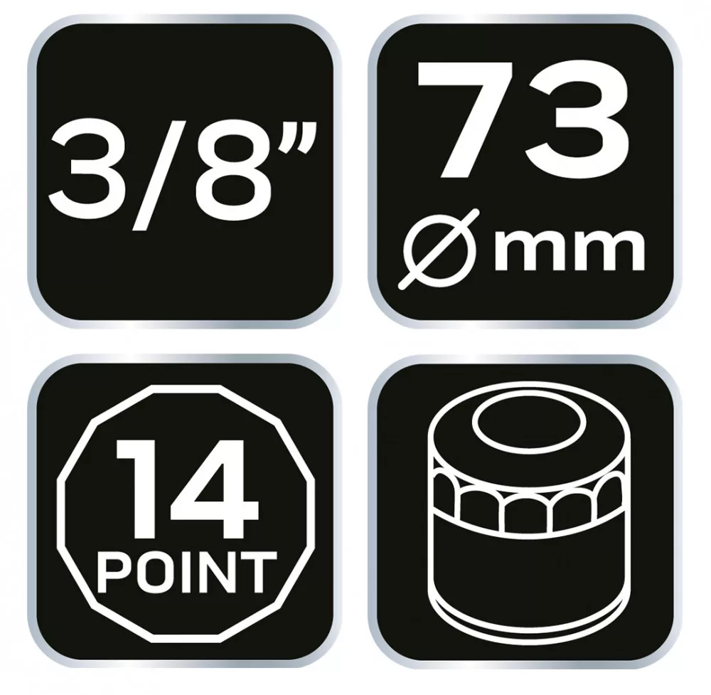 Csésze típusú olajszűrő kulcs, 73 mm, 14-pontos, hajtószög 3/8 "