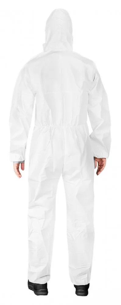 A NEO festőruha PP+PE egy eldobható védőoverall, amely kívülről polietilénnel bevont polipropilénből készült, mikroporózus szerkezetű, 65 g/m2. mikroporózus szerkezettel.Gumirozott kapucnival rendelkezik további gumirozások vannak a derék, az ujjak és a lábszárak alján, hogy még jobban védjen a szennyeződések ellen. Cipzárral záródik, amelyet ráadásul egy ragasztós zárólap borít. Védelmi besorolások: EN 1073-2:2002 szabvány szerinti 2. osztályú szennyeződés elleni védelemmel- EN 1149-5:2018 szabvány szerinti elektrosztatikus tulajdonságokkal- EN 13034:2005+A1:2009 szabvány szerinti BP [6] típusú (folyékony vegyi anyagok), 5. típusú (szilárd részecskék) vegyi anyagokkal szembeni védelemmel-EN 14126:2003+AC:2004 szabvány szerinti 5-B típusú biológiai anyagokkal szembeni védelemmel rendelkezik. A védőoverál elején nyomtatott logóval és bevarrt papírmérettel rendelkezik. A NEO márkájú terméket több méretben kínálják.