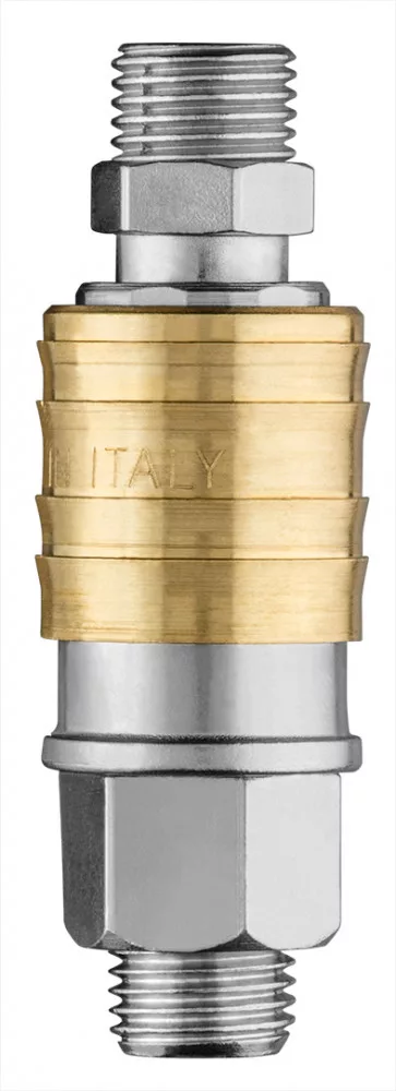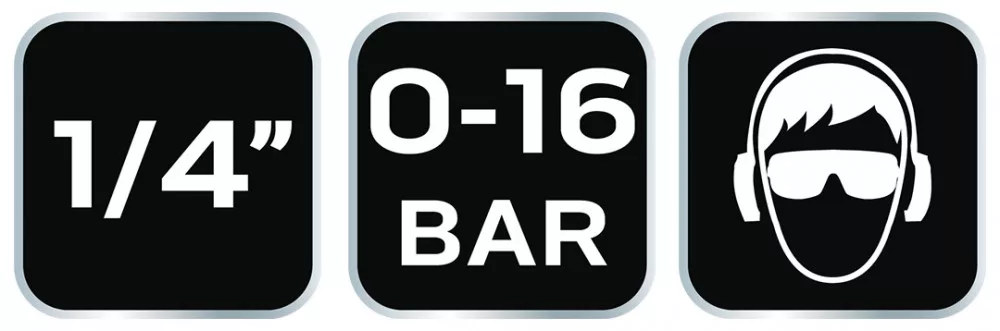NEO pneumatikus gyorscsatlakozó + ellendarab, 1/4" külsőmenetes, komplett. Kiváló minőségű rozsdamentes acélból és sárgarézből. Biztonságos csatlakozást nyújt 16 bar nyomásig. A rugónak köszönhetően a magasnyomású tömlő nem törik meg. A CE tanúsítvány bizonyítja a termék kiváló minőségét. A NEO márka a professzionális igényeket is kielégíti.