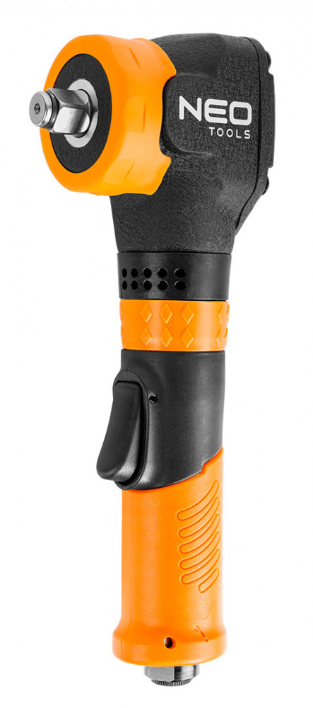 NEO Pneumatikus sarok-ütvecsavarozó . 1/2", 500 Nm, 6,3 bar maximális üzemi nyomás, átlagos levegőfogyasztás 113 l/perc. A kulcs percenként 75 000 fordulatszámot ér el. Könnyű, 1,17 kg-os súlya és praktikus formája hozzájárul a munka megkönnyítéséhez, nehezen hozzáférhető helyeken is. Műhelymunkákhoz ajánlott. A NEO márkájú termékek minőségét a CE tanúsítvány tanúsítja.