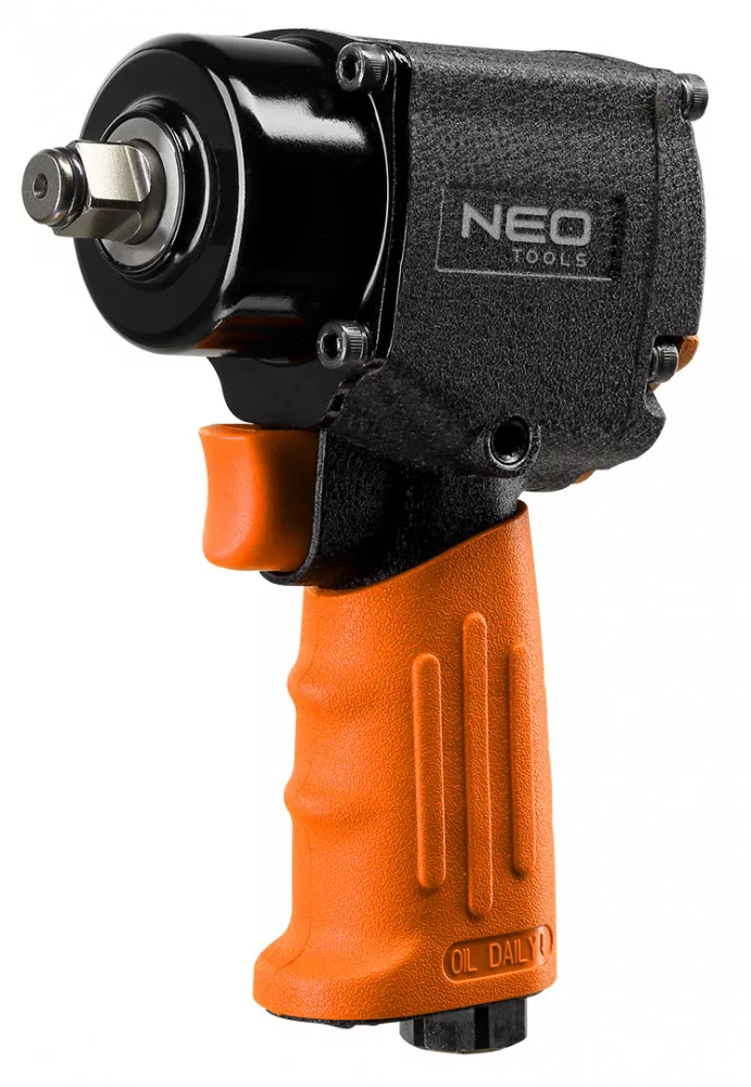 NEO professzionális pneumatikus ütvecsavarozó, 1/2"-os. Kompozit anyagból, nagy terheléssel járó munkákhoz. Twin Hammer ikerkalapácsos ütőmechanizmus maximális forgatónyomaték elérését teszi lehetővé széles fordulatszám-tartományban. Forgásirányváltás jobb-bal, forgatónyomaték-szabályzás 680 Nm tartományban. A munka kényelmét növeli a szigetelt fagyásvédett markolat. A CE tanúsítvány igazolja az európai biztonsági normáknak való megfelelést. A NEO márka a professzionális igényeket is kielégíti.