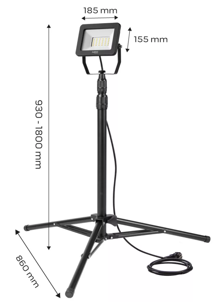 Ismerje meg a NEO háromlábú reflektor jellemzőit, amelyet kiválóan alkalmazhatnak javítási és építési munkálatok során, valamint műhelyben vagy fotóstúdióban. 50 W-os SMD LED-ek: Erős és hatékony 50 W-os SMD LED-ek biztosítják a kiváló fényerőt és a magas fényteljesítményt. , 4500 Lumen Fényáram: A reflektor 4500 lumen fényárammal rendelkezik, elegendő ahhoz, hogy hatékonyan megvilágítsa a munkaterületet vagy a fotóstúdiót. Állványra Helyezett Világítótest: A világítótestet állványra helyezik, amely lehetővé teszi a magasság és a fény irányának könnyű beállítását. Maximális Magasság 1,8 m: A háromlábú állvány maximális magassága 1,8 méter, lehetővé téve a magasabb megvilágítást és a széles körű láthatóságot. Alumínium Test: A reflektor teste alumíniumból készült, amely könnyűséget és tartósságot biztosít. IP65 Védelmi Besorolás: Az IP65 védettségi besorolás lehetővé teszi a reflektor kültéri használatát is, ellenállva az időjárási elemeknek. Európai Biztonsági Megfelelés: A CE tanúsítvány igazolja, hogy a termék megfelel az európai biztonsági előírásoknak. Ez a NEO háromlábú reflektor kiváló választás lehet olyan helyszínekhez, ahol nagyobb fényteljesítményre van szükség, például építkezéseken, műhelyekben vagy bármely területen, ahol hatékony és állítható megvilágításra van szükség. A magas fényáram és az állítható világítótest segítségével ideális megoldást nyújthat a különböző feladatokhoz.