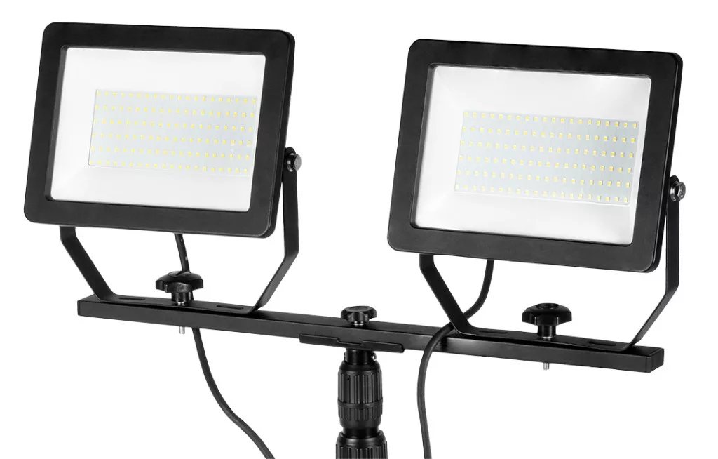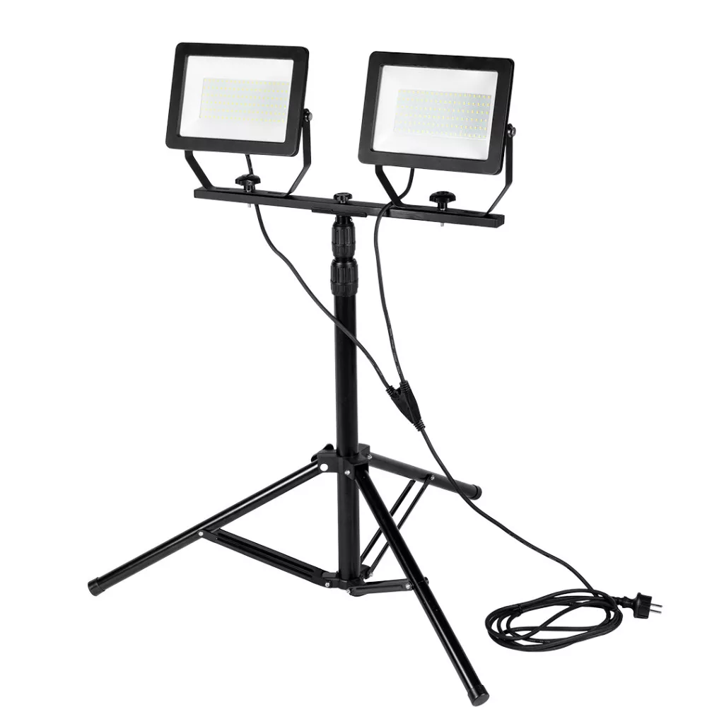 A NEO dupla reflektor egy erős és nagy teljesítményű megvilágító eszköz, amely számos előnnyel rendelkezik:, Teljesítmény: Mindkét reflektor 200 W teljesítménnyel és összesen 17,000 lumen fényárammal rendelkezik, biztosítva a nagy intenzitású megvilágítást.Fényforrás típusa: SMD LED-eket használnak, amelyek hatékonyak és hosszú élettartamúak.Élettartam: A reflektorok becsült élettartama 25,000 óra, ami hosszú távú használatot biztosít.Színhőmérséklet: A 6500K színhőmérséklet hideg fehér fényt biztosít.Kényelmes sugárzási szög: 110 fokos széles sugárzási szög, széles területek megvilágítására alkalmas.Tápfeszültség: 230V~50Hz, ami általános elektromos hálózaton való könnyű használatot jelent.Kábel és dugó: Mindkét reflektor 3 méteres kábellel és dugóval rendelkezik, ami a csatlakoztatást egyszerűvé teszi.IP65 védettség: A kültéri használathoz alkalmas, ellenáll az időjárási viszontagságoknak., CE tanúsítvány: Megfelel az európai biztonsági előírásoknak., Felvillanási idő: 60% <1s, ami gyors és hatékony fényforrást eredményez.Üzemi hőmérséklet: -25 - +45 °C, így változatos időjárási körülmények között is használható.Teleszkópos állvány: A teleszkópos állvány lehetővé teszi a magasság könnyű és rugalmas beállítását.Ez a dupla reflektor ideális választás lehet építési munkákhoz, műhelyekhez vagy olyan helyszínekhez, ahol erős és állítható fényforrásra van szükség.