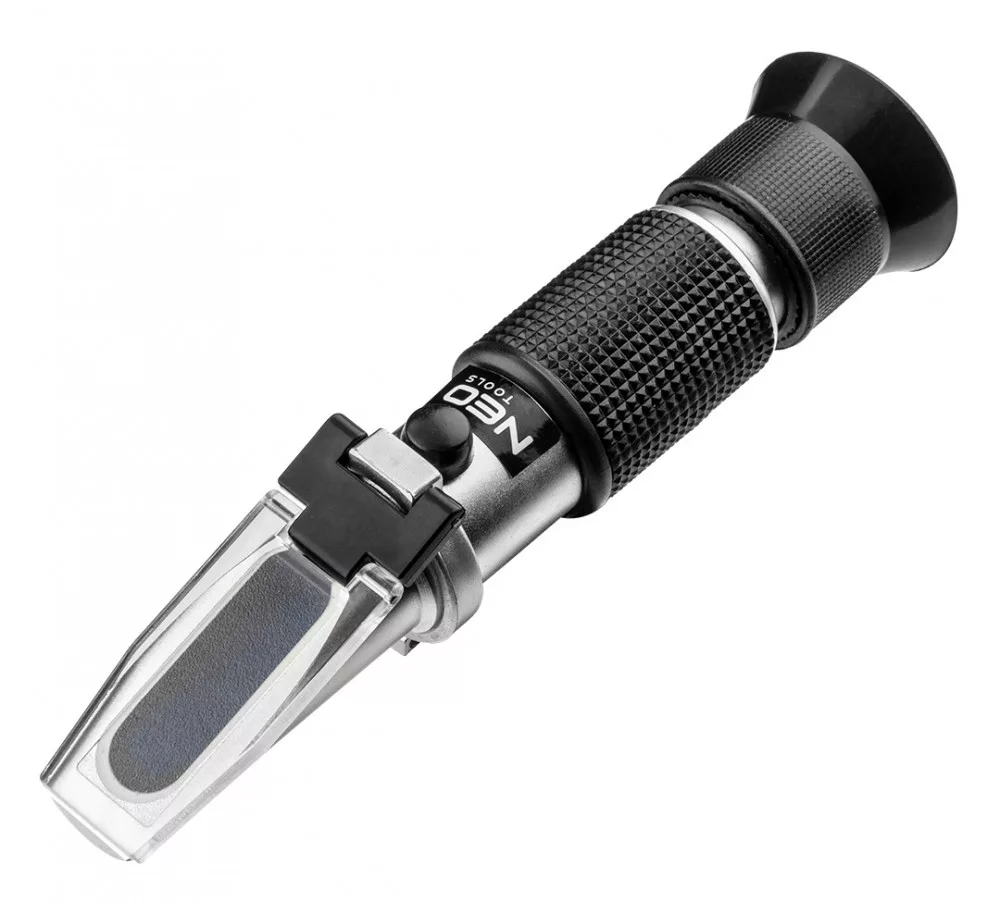 Refraktométer: hűtőfolyadékok, elektrolitok, mosófolyadékok ellenőrzéséhez. A készlet tartalma: refraktométer, tisztító kendő, folyadék pipetta, csavarhúzó. Referencia hőmérséklet: 20 ° C, ATC - automatikus hőmérséklet-kompenzáció (10 - 30 ° C hőmérsékleten), beállítható fókusz, hosszúság 160 mm, fém test