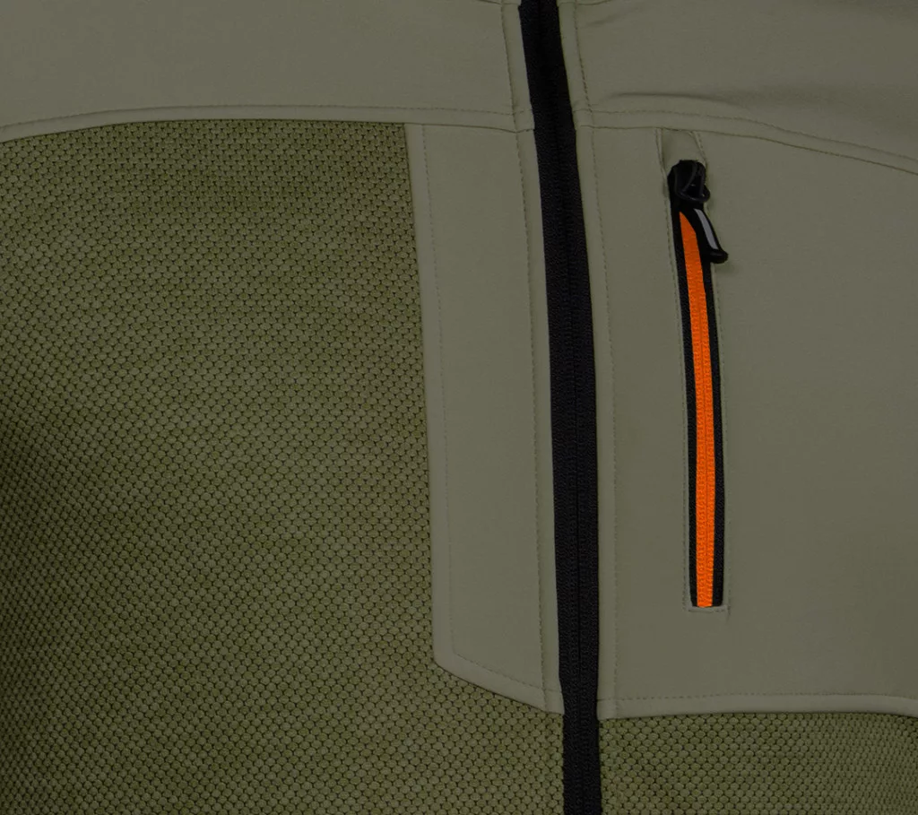 NEO 81-517 Softshell Munkavédelmi kabát, OUTDOOR, zöld. Kötött kabát "halpikkelyes" szövésű, softshsell betétekkel. Kényelmes cipzárral és praktikus bézs színű. A termék 100% poliészterből készült. Súlya 265 g/m2. A sofshell kötött betétek a kabát varrásain, gallérján, ujjain, zsebein és alján találhatók. A mellzseb, valamint az oldalzsebek cipzárasak. A NEO TOOLS pulóver praktikus szerszámcsipesszel, névtáblával és nyomtatott logóval is rendelkezik a nyakán. Szakembereknek ajánlott különböző beltéri és kültéri munkákhoz valamint kiránduláshoz, túrázáshoz.