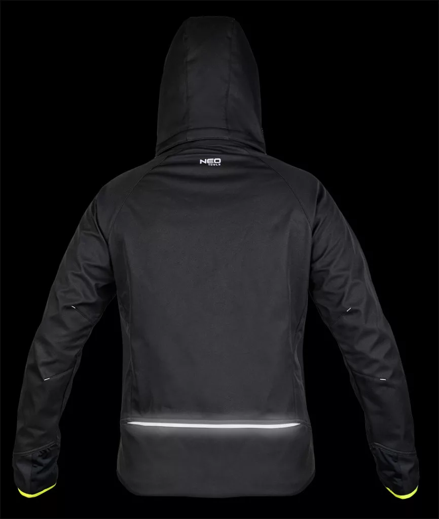 NEO 81-562-S Softshell munkavédelmi kabát, fekete-sárga. Egy praktikus dzseki fekete színben, sárga betétekkel, 100% kiváló minőségű poliészterből. Praktikus, állítható kapucnival, mellzsebbel és cipzáras oldalzsebekkel rendelkezik. A kabát hátulján található fényvisszaverő csíknak köszönhetően sötétedés után is jó láthatóságot biztosít. Az ujjakon és a ruhadarab végén található rugalmas csíkok védelmet nyújtanak a szél ellen, a névtábla pedig jó azonosítást biztosít a munkahelyen. A NEO TOOLS Mix&Match kabátját a tavaszi és őszi hónapokra ajánljuk.