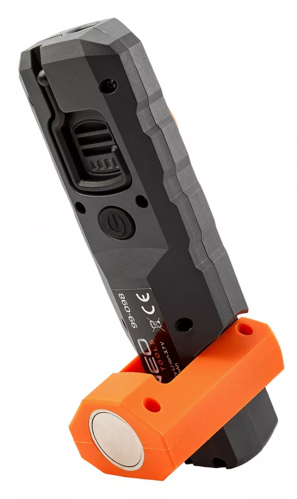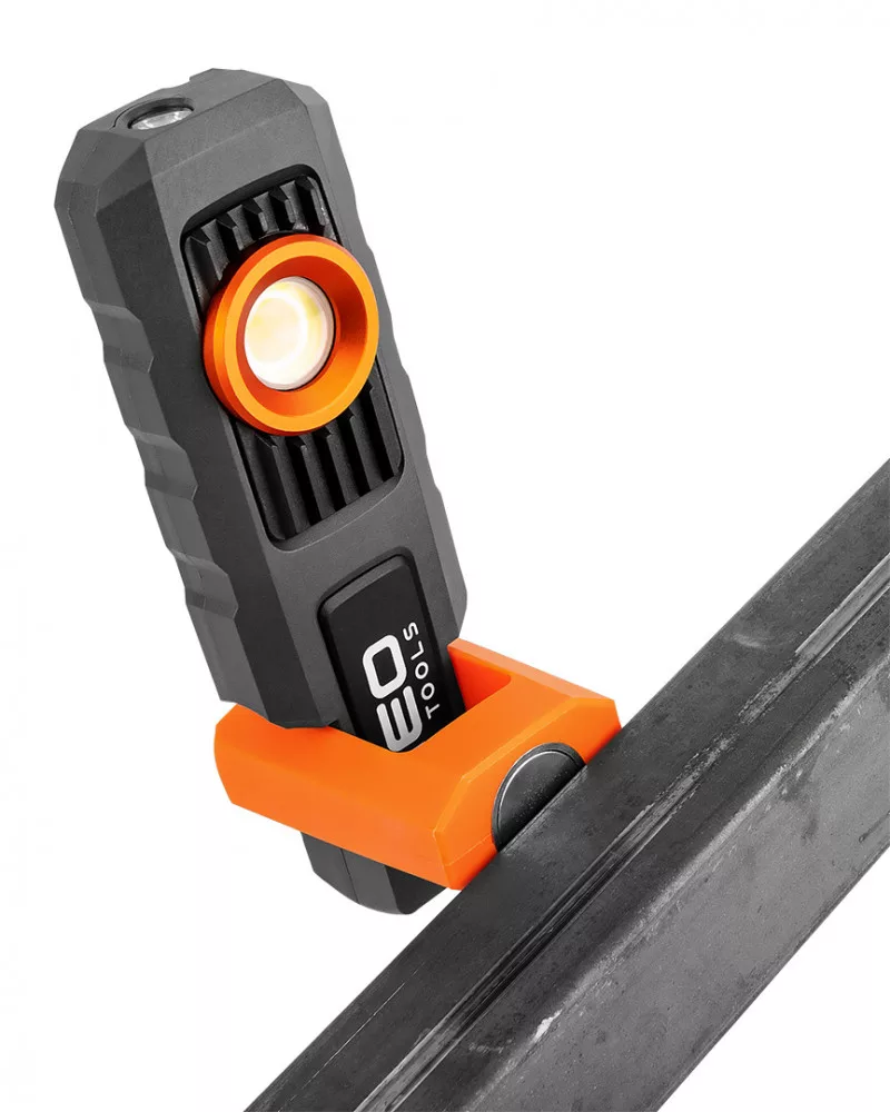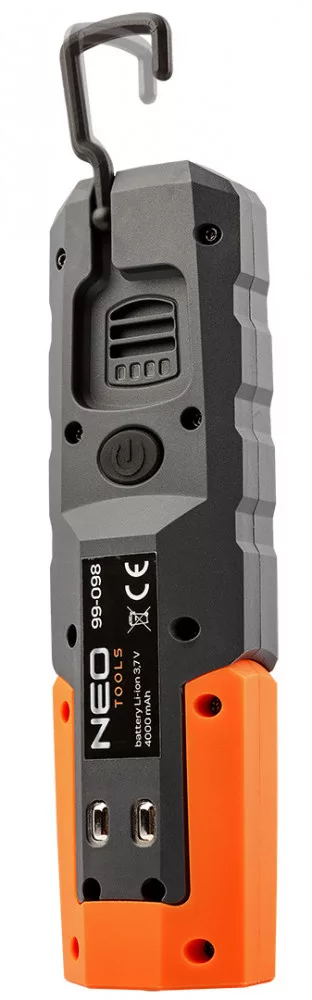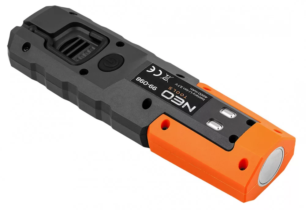 A NEO lámpa egy sokoldalú és kiváló minőségű megoldás, amely számos funkcióval és tulajdonsággal rendelkezik.Két fényforrás: LED-del felszerelve: COB és UV diódával. A színvisszaadási index (CRI) meghaladja a 90 értéket, ami magas színvisszaadást jelent.Fényerő és üzemidő: A különböző üzemmódokban a maximális kimeneti teljesítmény: 380 lumen (meleg fehér) / 350 lumen (természetes fehér) / 390 lumen (hideg fehér). Az üzemidő becslések szerint 4 és 4,5 óra között van, az aktuális üzemmódtól függően.Akkumulátor és töltés: 3,7 V-os 4000 mAh-s akkumulátorral és 5 V-os 1A tápegységgel rendelkezik. A beépített C típusú töltőport segítségével a készülék 5 óra alatt teljesen feltölthető.Kompakt méret és könnyű súly: Mérete 185 x 50 x 32 mm, súlya (alap nélkül) 245 g, így könnyen hordozható és tárolható.Vízállóság: Az IP67-es vízálló minősítésnek köszönhetően a lámpa ellenáll az esőnek és más nedvességnek., Tartozékok: A lámpa állomással, töltővel, kampóval és talpmágnessel együtt kínáljuk, ami különböző munkaterületeken való felhasználást tesz lehetővé.Széleskörű felhasználás: Ideális karosszériaműhelyekben és barkácsolóknak egyaránt ajánlott. Hasznos lehet hűtőfolyadék-szivárgások vagy egyéb munkafolyamatok során.Ez a lámpa magas színvisszaadással és számos hasznos funkcióval rendelkezik, amelyek megkönnyítik a munkát és javítják a láthatóságot a műhelyben.