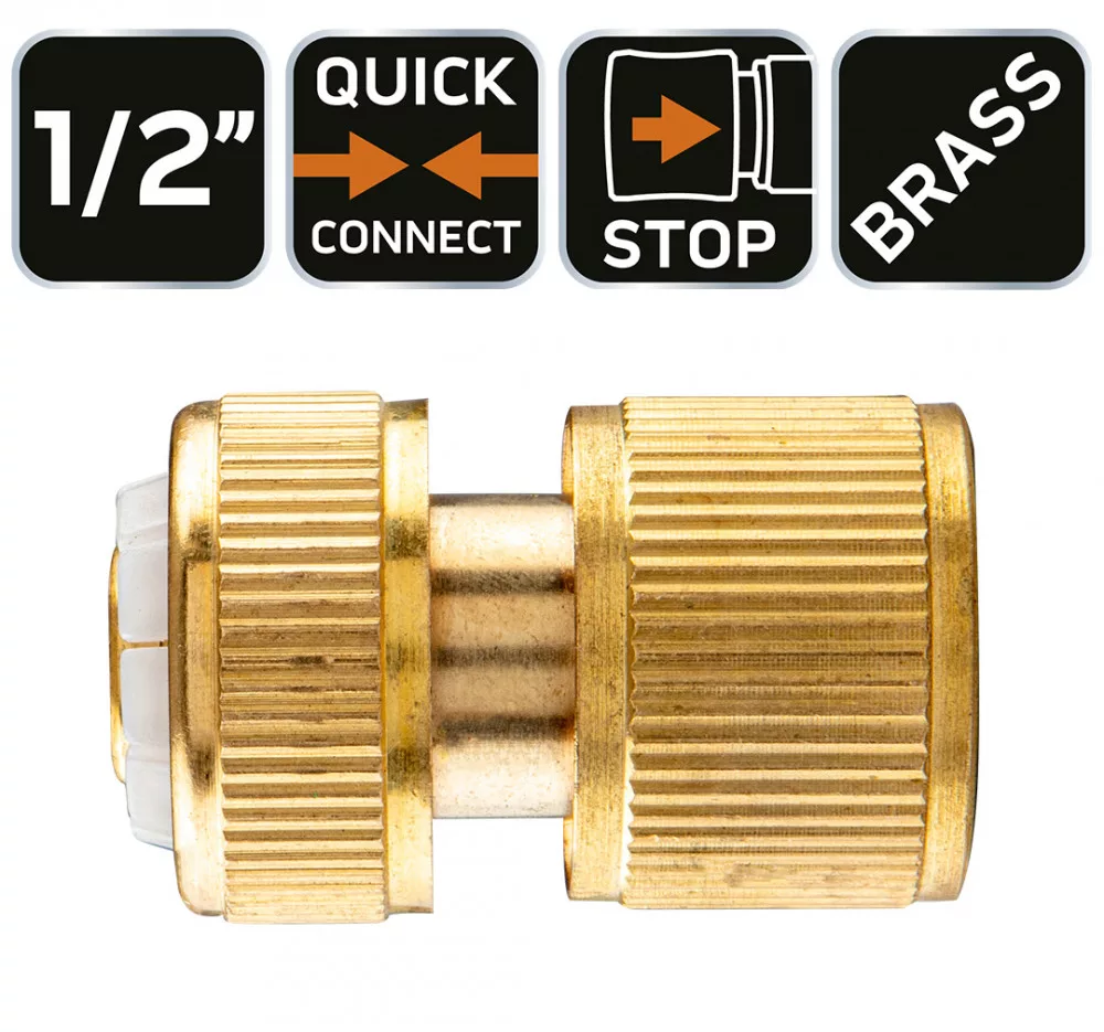 NEO Tömlő gyorscsatlakozó 1/2", vízstoppos, réz (15-731)