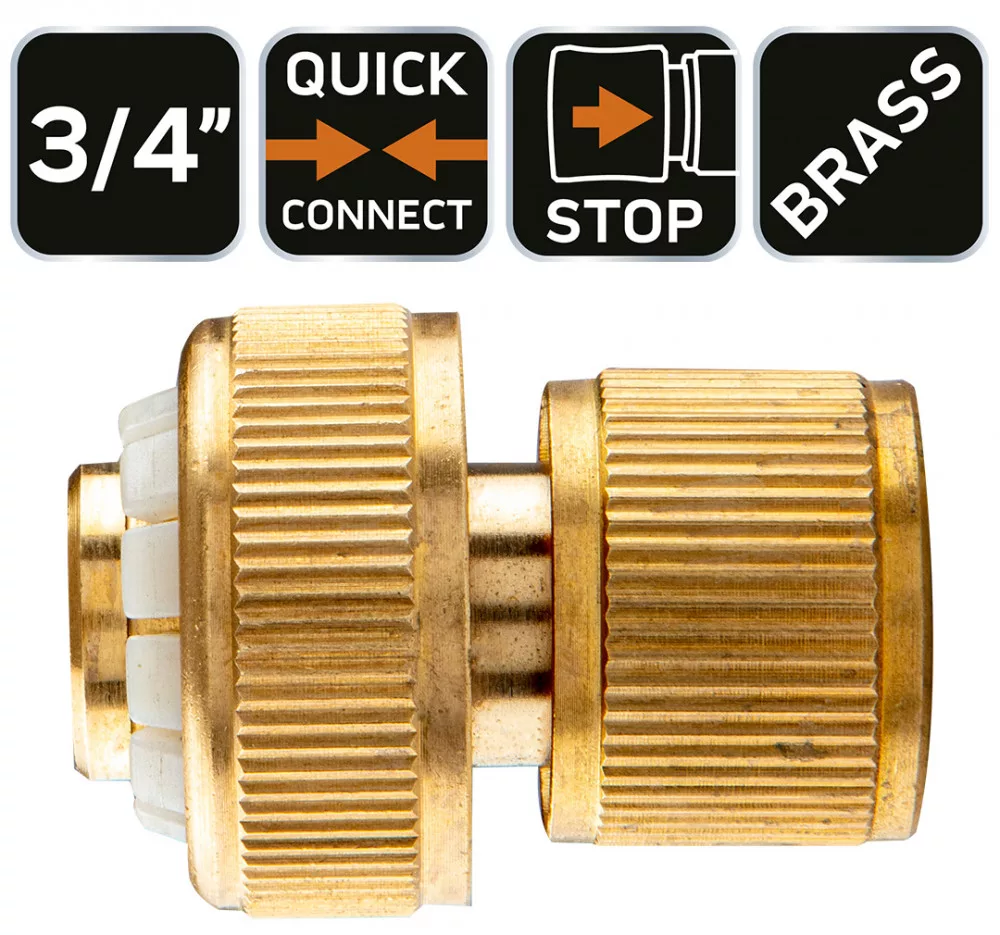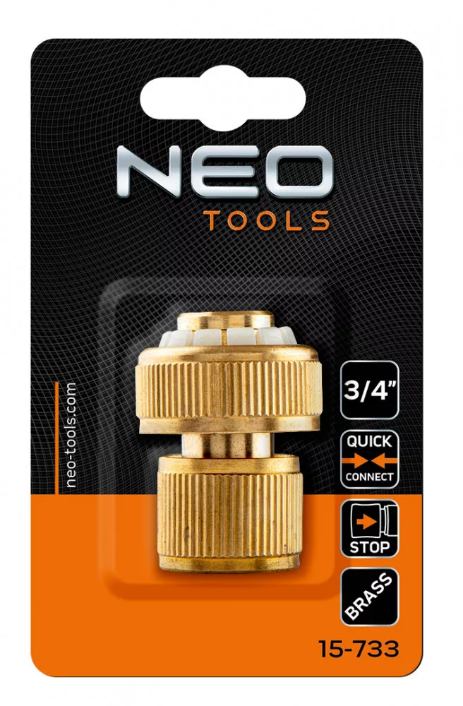 NEO Tömlő gyorscsatlakozó 3/4", vízstoppos, réz (15-733)