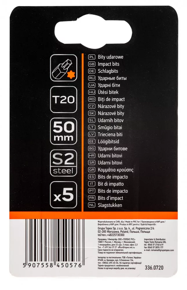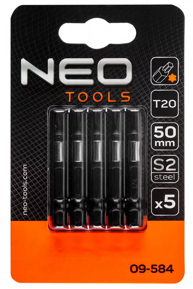 NEO Torziós ütvecsavarozó bitek S2, 50mm, T20 - 5db. (09-584)