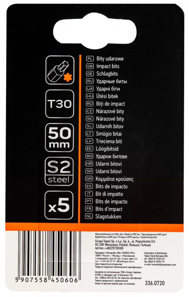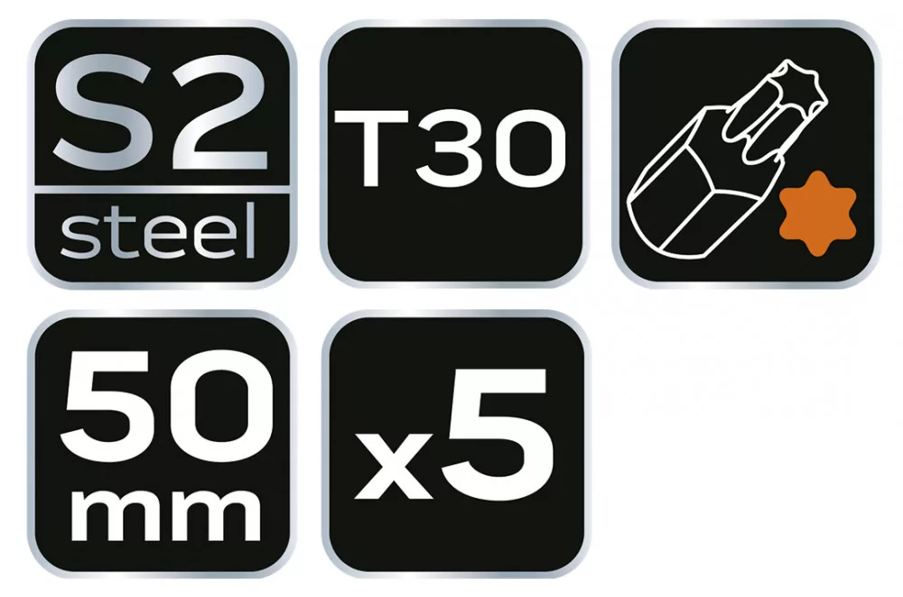NEO Torziós ütvecsavarozó bitek S2, 50mm, T30 - 5db. (09-587)
