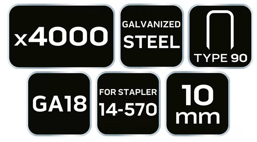NEO Tűzőkapocs, horganyzott 90-es tipus, pneumatikus tűzőgéphez (14-570), GA18, 10 mm, 4000 db (14-620)