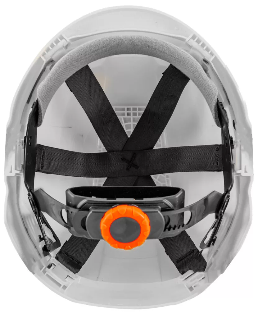 Ipari sisak magasban végzett munkához, fehér színű ipari sisak, amelyet a felügyelők és az építkezések vezetői számára ajánlunk. A 430 g-os könnyű súlyú, lengyel gyártású termék nagy szilárdságot biztosít a magasban végzett munka során. Tartós ABS műanyagból készült, 10 szellőzőnyílással rendelkezik, amelyek lehetővé teszik a levegő szabad áramlását a sisak belsejében.A sisak egy forgatható tartószerkezetből, egy szilárd sisakhéjból és egy sor hevederből (4 ponton rögzített állpánt), teherhordó heveder (6 ponton a sisakhéjhoz rögzítve) és egy kényelmes beállítási mechanizmussal ellátott tartószerkezetből áll, amely lehetővé teszi a paraméterek megváltoztatását egy könnyen használható gombbal. A sisaknak van egy velúr, cserélhető izzadságpárnája is. A terméket széles beállítási tartomány jellemzi (51-63 cm). Nagyon alacsony hőmérsékleten (-30°C) és meleg időben egyaránt használható. A sisak II. védelmi osztályba van sorolva. Az oldalirányú deformációval és ütésekkel szembeni ellenállása lehetővé teszi, hogy az építőiparban, az iparban és az erdészetben is alkalmazzák. Kiváló védelem a szélsőséges körülmények között dolgozók számára.