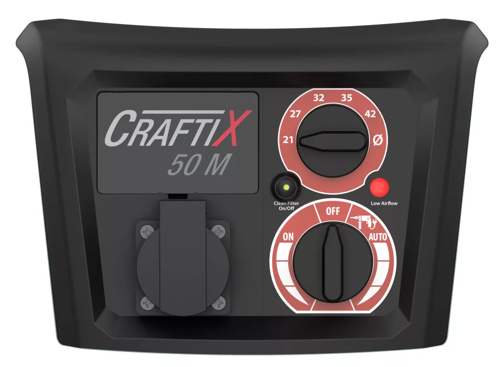 </pA két CraftiX M porosztályú modell esetében a szívóteljesítményt egy figyelmeztető eszköz figyeli. A szívókötélben használt legkisebb átmérő beállítása után a felhasználót hang- és fényjelzés figyelmezteti, ha a kívánt légáramlást nem éri el. Ezáltal elkerülhető a belélegezhető levegő fokozott porszennyezése.