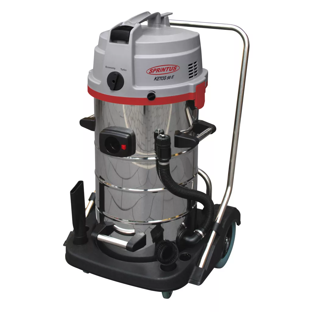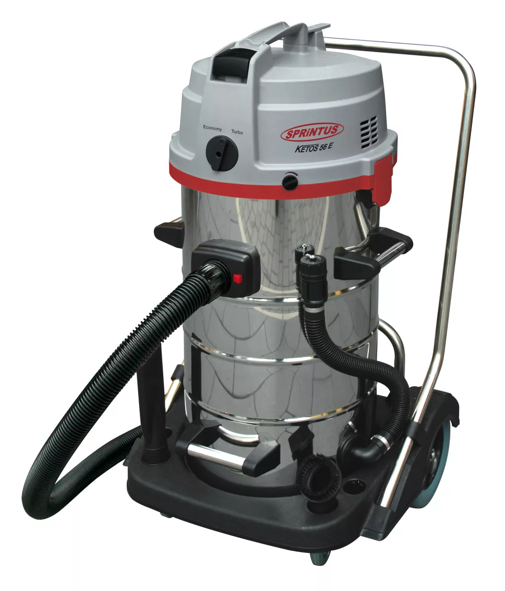 Ez az 55 literes rozsdamentes acél száraz/nedves porszívó az új Ketos termékcsaládunkból erővel teli. A sorba kapcsolt nagy teljesítményű motorok 300 mbar szívóteljesítményt érnek el 70 liter/másodperc térfogatáram mellett motoronként.