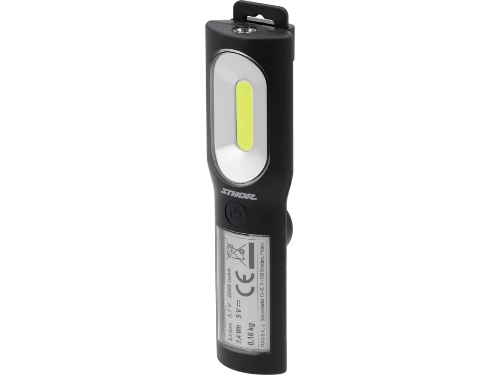 4 üzemmód: COB 100% (350 lm), COB 30% (100 lm), POWER LED (65 lm), piros villogás.