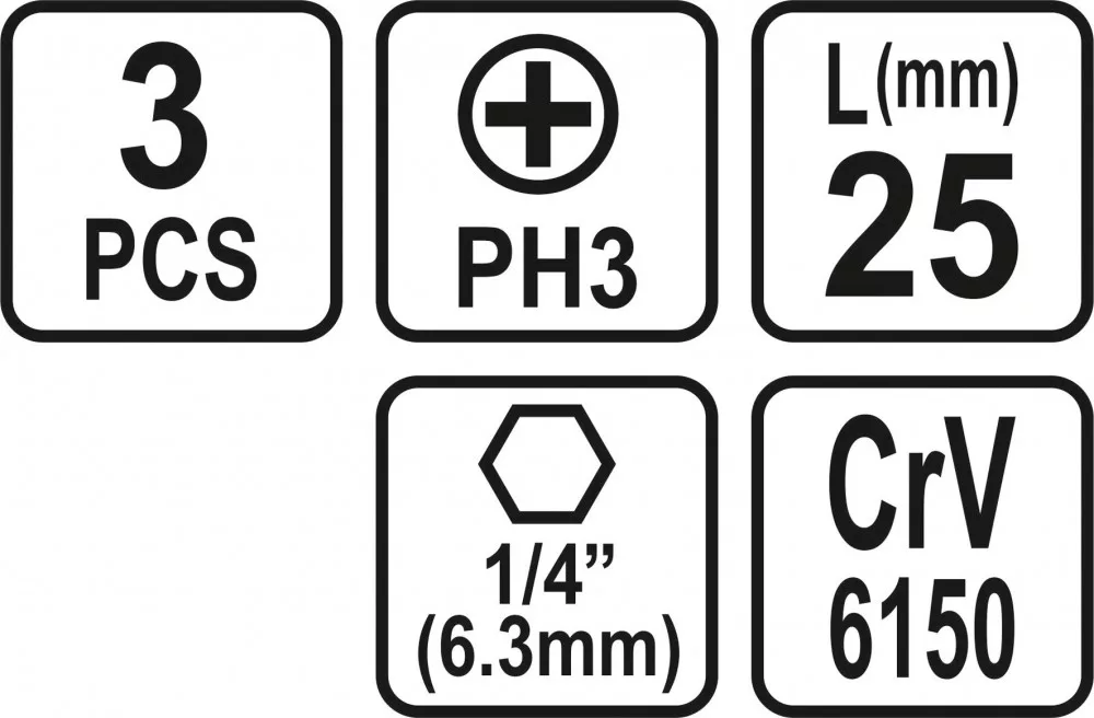 STHOR Bitkészlet 3 darab 1/4 PH3X25mm (65454)