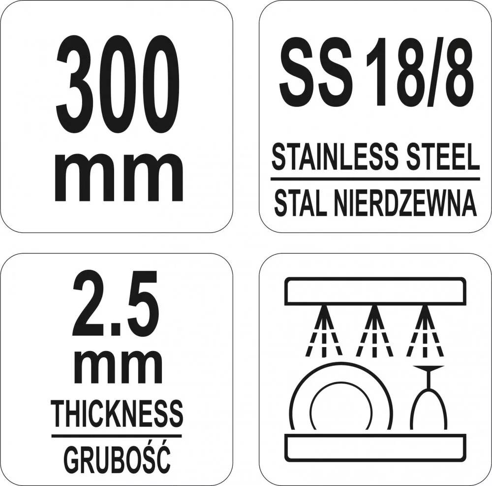 Kiváló minőségű 18/8 rozsdamentes acélból készült, 2,5 mm-es profilvastagsággal. Kényelmes fém markolattal rendelkezik. Tartós és masszív kialakítása hosszú élettartamot garantál.