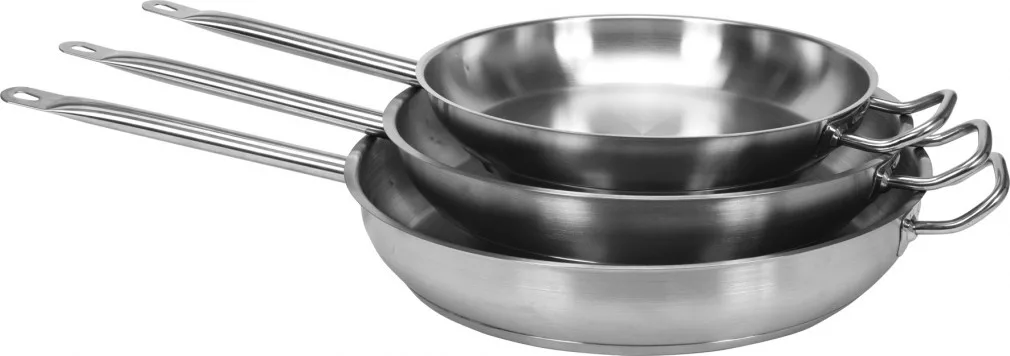 Kiváló minőségű 21/0 rozsdamentes acélból készült, amelyet kifejezetten a vendéglátásban való használatra fejlesztettek ki. Az ilyen típusú acélból készült serpenyők legfontosabb előnye, hogy akár 30%-kal hatékonyabban vezetik a hőt, mint a 304-es acélból készült szabványos serpenyők. Jellemző rájuk továbbá a mechanikai sérülésekkel, valamint a szerves savak és tisztítószerek hatásaival szembeni fokozott ellenállás. Ezért mosogatógépben moshatóak és ellenállnak az intenzív felületi súrolásnak.
