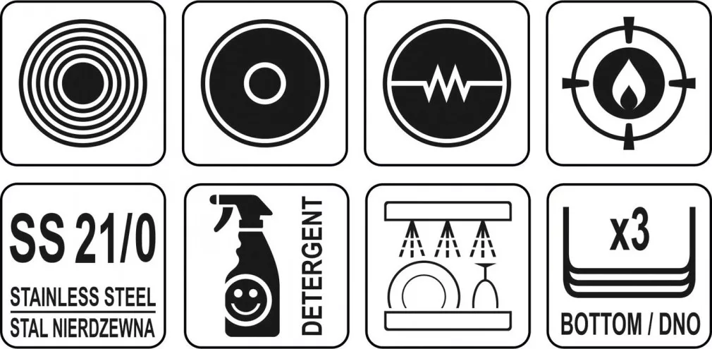 Az alján található speciális ferromágneses betét lehetővé teszi a YATO serpenyők használatát bármilyen típusú tűzhelyen, mint pl.