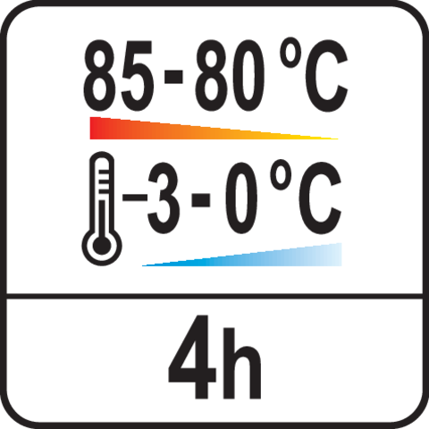 Forró tartalom esetén a hőveszteség 4 óra alatt mindössze 5 °C. Hideg tartalom esetén a hőmérséklet-emelkedés 4 óra alatt mindössze 3°C.