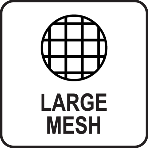 A szűrő külső átmérője 155 mm. A 33 cm hosszúságú, megerősített fogantyú azonban 4 mm vastag drótból készült. Ez teszi a kanalat nagyon tartóssá. A szűrő durva szembőségű: 6mm x 6mm.