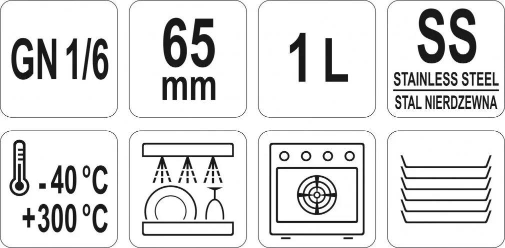 A GN tárolóedényeket élelmiszerek hűtési és fagyasztási körülmények közötti tárolására tervezték - akár -40°C-ig. Ideálisak magasabb - akár 300 °C-os - hőmérsékleten történő használatra is. Ennek köszönhetően a kombi gőzölők technológiájában is felhasználhatók.