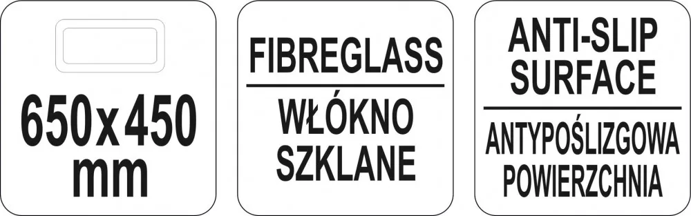 A Yato márka csúszásgátló, téglalap alakú pincértálcája 650x450 mm méretű. A Yato csúszásgátló tálcák nélkülözhetetlen eszközök a vendéglátásban. Gyártásukhoz többrétegű üvegszálat használtak, amely magas merevséget és mechanikai szilárdságot garantál. A klasszikus fekete szín és az esztétikus kivitelezés lehetővé teszi használatukat szállodákban, éttermekben és bárokban. A termék leesését megakadályozó perem és a speciális csúszásgátló felület meggátolja a termékek elmozdulását és csökkenti a csúszás kockázatát. A Yato tálcák könnyen tisztán tarthatók. Megengedett, hogy a vendéglátásban használt tisztítószerekkel mossák őket. Bár a tálcák vízállóak, mosogatógépben való mosásukat nem ajánlják, mert az agresszív tisztítószerek károsíthatják felületüket.