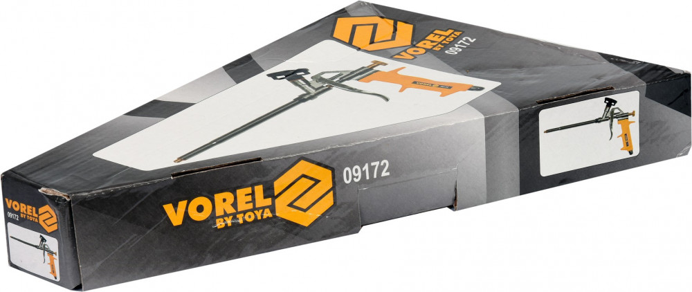 Rozsdamentes acélból és sárgarézből, valamint ellenálló műanyagból készült pisztoly. A habok tipikus csavaros tartályokból történő felhordására tervezték .