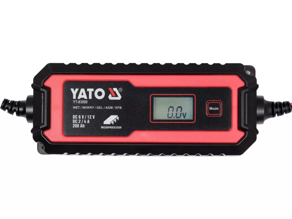 YATO AKKUMULÁTOR TÖLTŐ 6/12 V 2/4 A MAX. 200 AH LCD KIJELZŐ (YT-83000)