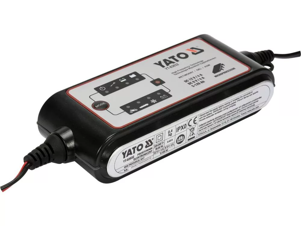 A professzionális YT-83032 egyenirányító 6V/12V akkumulátorok töltésére szolgál motorkerékpárokban, traktorokban, személygépkocsikban, furgonokban és motorcsónakokban. Funkciója a helyes feszültség fenntartása a nyugalmi állapotban lévő akkumulátorokban - karbantartó töltés. Az egyenirányító lehetővé teszi háromféle akkumulátor töltését: hagyományos savas-ólmos akkumulátorok, az úgynevezett nedves akkumulátorok, ahol az elektrolit folyékony formában van; ólom gél akkumulátorok, ahol az elektrolit gél formájában van; és AGM akkumulátorok, amelyeknél az üvegszálas szőnyeg rögzíti az elektrolitot. Rendelkezik rövidzárlat elleni védelemmel. A használt mikroprocesszor nagyfrekvenciás technológiában működik. A YT-83032 egyenirányító lehetővé teszi háromféle akkumulátor töltését: hagyományos savas-ólmos akkumulátorok, az úgynevezett nedves akkumulátorok, ólom gél akkumulátorok, ahol az elektrolit gél formájában van, és AGM akkumulátorok, amelyeknél az üvegszálas szőnyeg rögzíti az elektrolitot. - Egyenirányító - Cserélhető csatlakozók készlete - Használati útmutató - Garancialevél