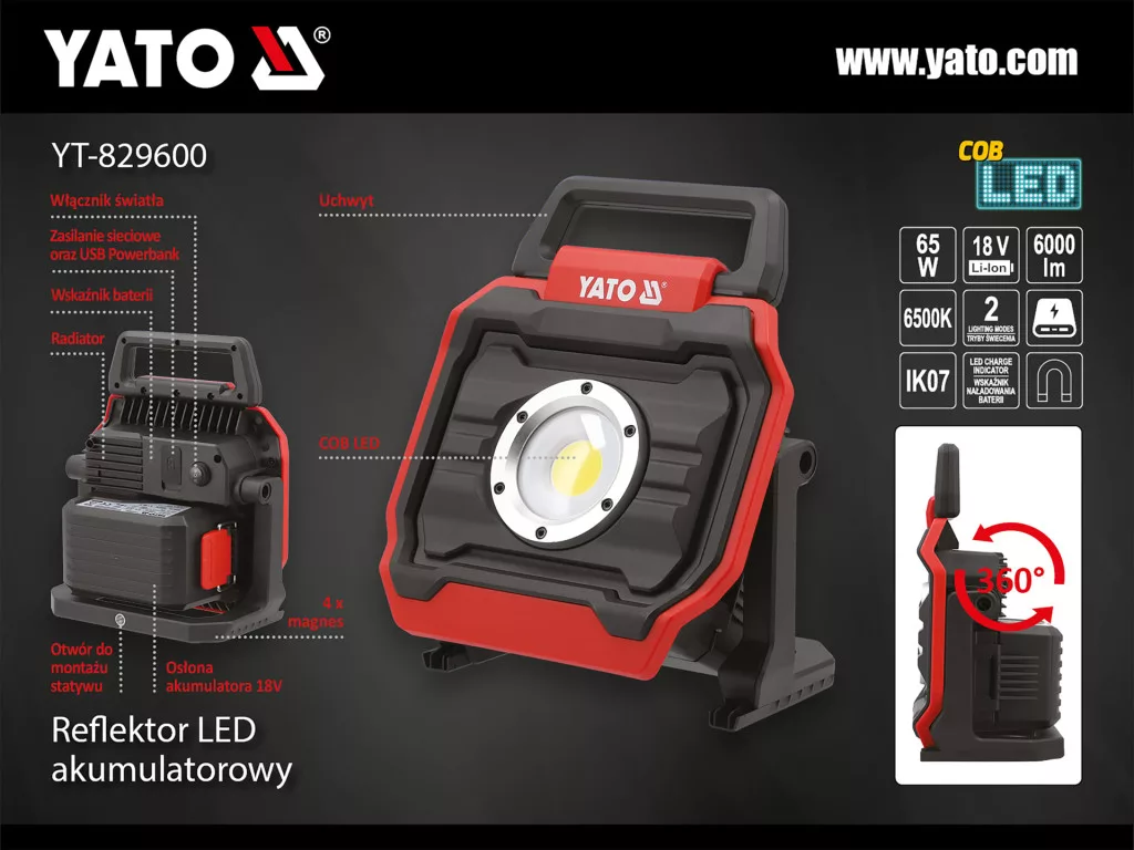 Kompatibilis a YATO 18V platform akkumulátoraival,