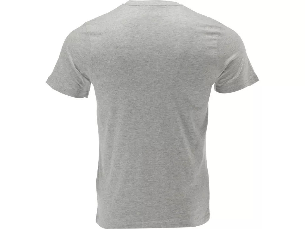 Póló a BASIC sorozatból, megnövelt, 180 g/m2 súlyú. 95% pamut pamut és 5% viszkóz hozzáadásával készült, szürke melange színhatást keltő pamut trikóból. A szövetkötések és a kivitelek túlnyomórészt robusztus és megbízható overlock varrással készültek.