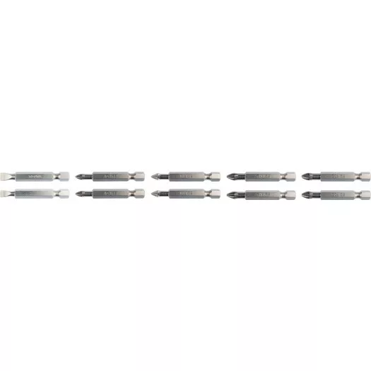 Precíziós bitek csavarok vagy csavarok behajtásához. Bit profil maratott, homokfúvott kivitel, korróziógátló bevonattal védve. Hidegen kovácsolt S2 acélból. NON SLIP SYSTEM technológiával készült, amely csökkenti a bit csavaros mélyedésbe csúszásának lehetőségét.