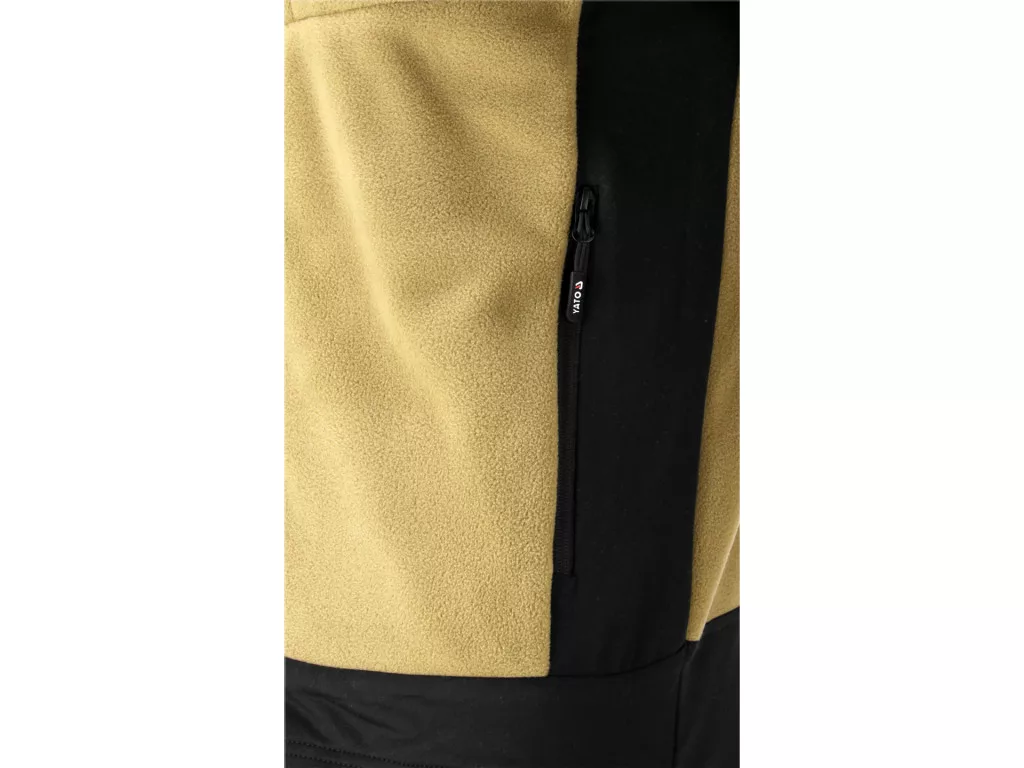 A kétirányú stretch betétek az oldalakon, a karok alatt és részben az ujjak alsó részén szinte teljesen kiküszöbölik a hagyományos polárokra jellemző kényelmetlenséget – például törzscsavarásnál vagy a fej fölötti munkavégzésnél. Emellett jobb légáramlást biztosítanak, így különösen a hónaljrészen csökken az izzadás.