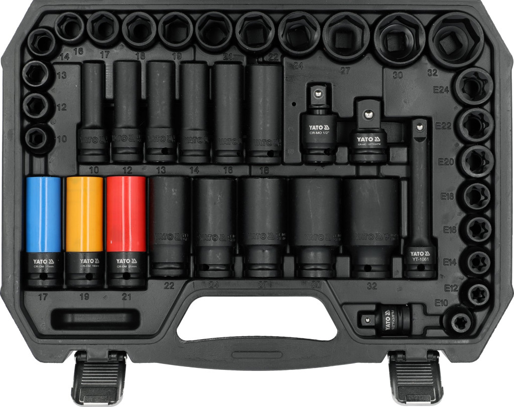 YATO GÉPI DUGÓKULCS és BIT KÉSZLET 1/2", 64 darabos (YT-10260)