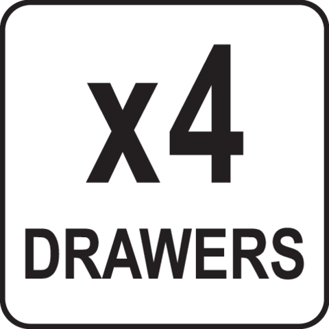 Modell 4 önzáró fiókkal, kényelmes fogantyúkkal a nyitáshoz. Lehetővé teszi GN 1/1 tárolóedények és palackok tárolását maximum 150 mm magasságban