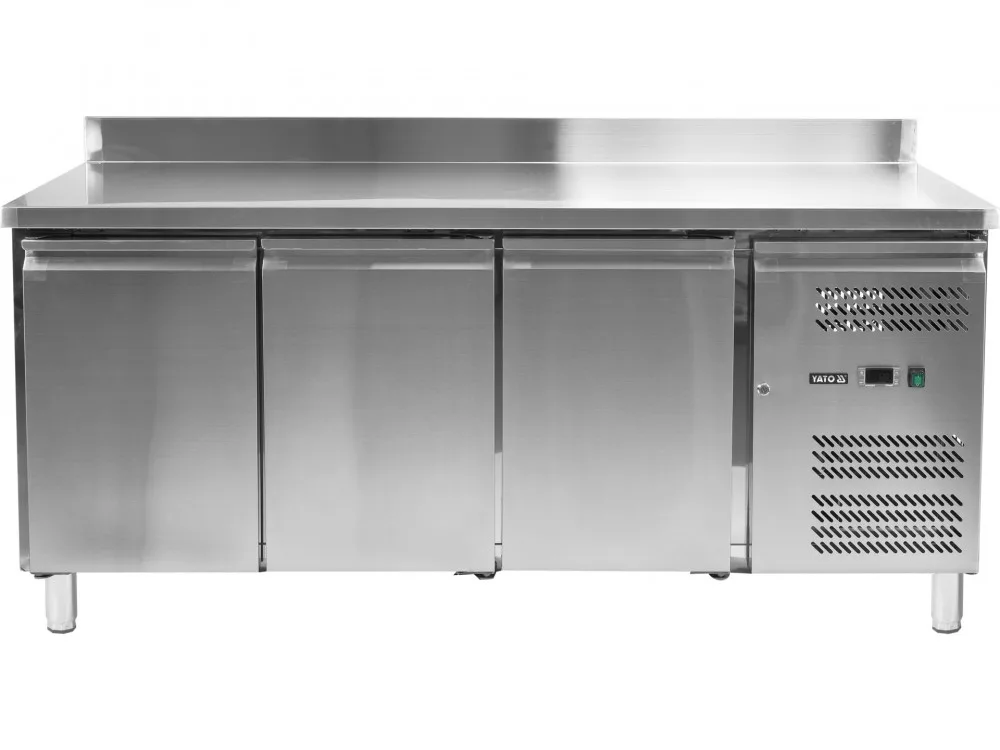 YATO YG-05255 peremmel ellátott munkalapos háromajtós hűtött asztal.