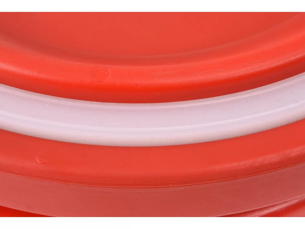 A szigetelt tárolóedény két rozsdamentes acélból készült tömör fogantyúval van ellátva a könnyű szállítás érdekében, a fedél pedig négy pattintós zárral rendelkezik. Ezeknek az alkatrészeknek a kiváló minősége és tartóssága garantálja a hosszú évekig tartó problémamentes használatot. A termosz speciális dombornyomással rendelkezik , amely lehetővé teszi az egymásra helyezést, azaz a tartályok azonos átmérővel egymásra helyezhetők, így viszonylag kis területen tárolhatók