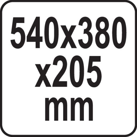 A tartály külső mérete 540 x 380 x 205 mm, belső mérete 460 x 330 x 200 mm.