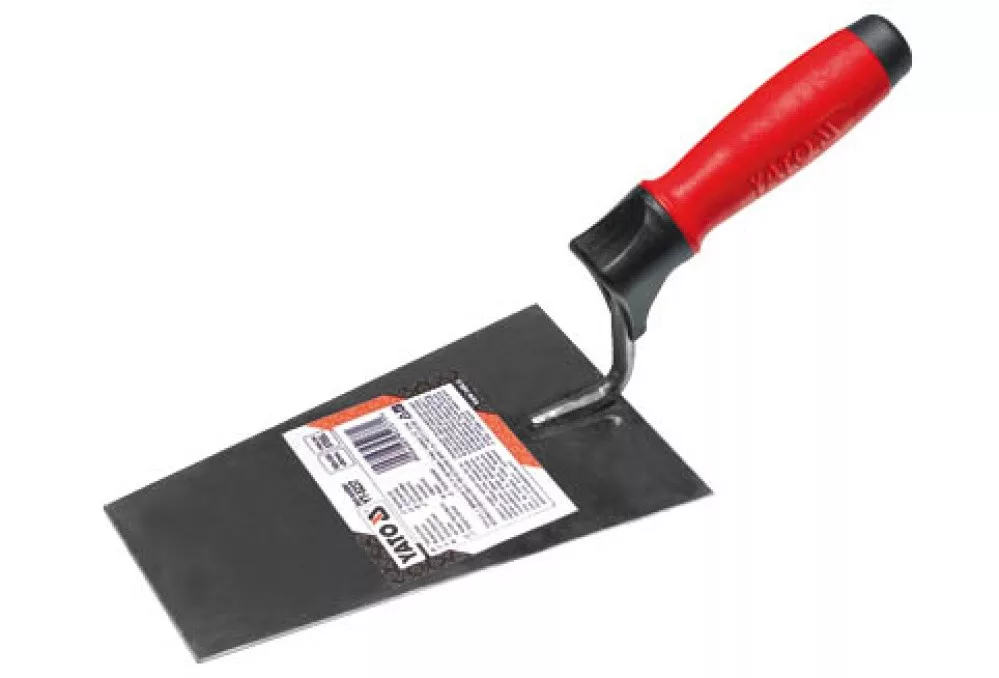 Rozsdamentes acélból készült professzionális trapéz simító a kőművesmunkákhoz.
