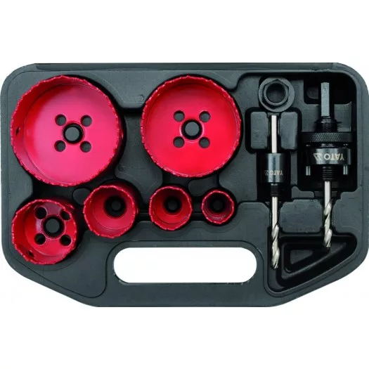 Professzionális bi-fém lyukfűrész készlet nagy lyukak fúrásához fémekben, lemezekben, szelvényekben és csövekben. Műanyagok, bútorlapok, szerkezeti szendvicspanelek és műgyanták fúrásához is kiváló. Ipari, szerviz és műhelyekben történő professzionális használatra ajánlott. Az elemek kiválasztásának köszönhetően ez a készlet különösen az elektromos berendezések területén alkalmazható.